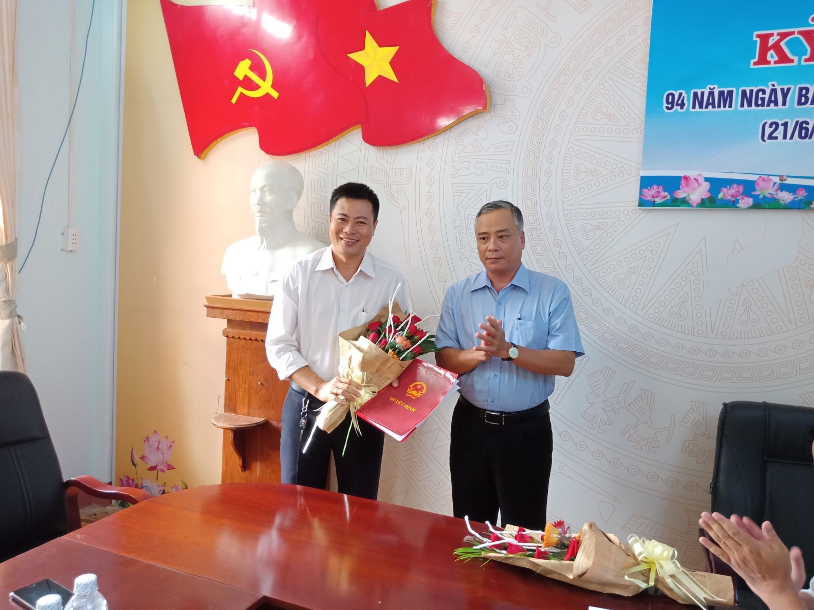 Ông Võ Đại Huế - Chủ tịch UBND huyện đã trao Quyết định cho ông Nguyễn Xuân Tỉnh –giữ chức vụ Trưởng Đài TT-TH huyện