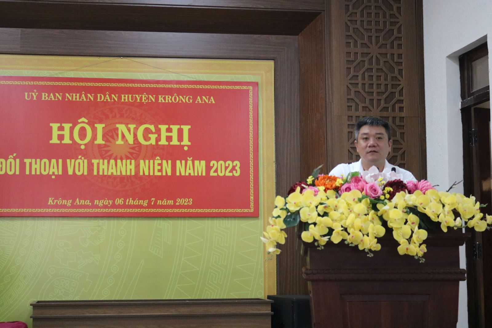 Phát biểu tại buổi đối thoại, ông Nguyễn Thanh Vũ Chủ tịch UBND huyện ghi nhận những tâm tư, nguyện vọng, những trăn trở, băn khoăn, lo lắng cũng như những kiến nghị, đề xuất của đoàn viên thanh niên trong việc thực hiện các chủ trương, chính sách phát triển thanh niên của Đảng và Nhà nước trên địa bàn huyện.