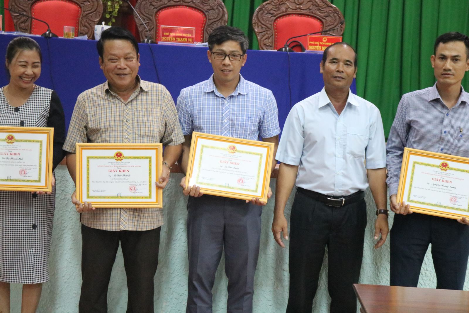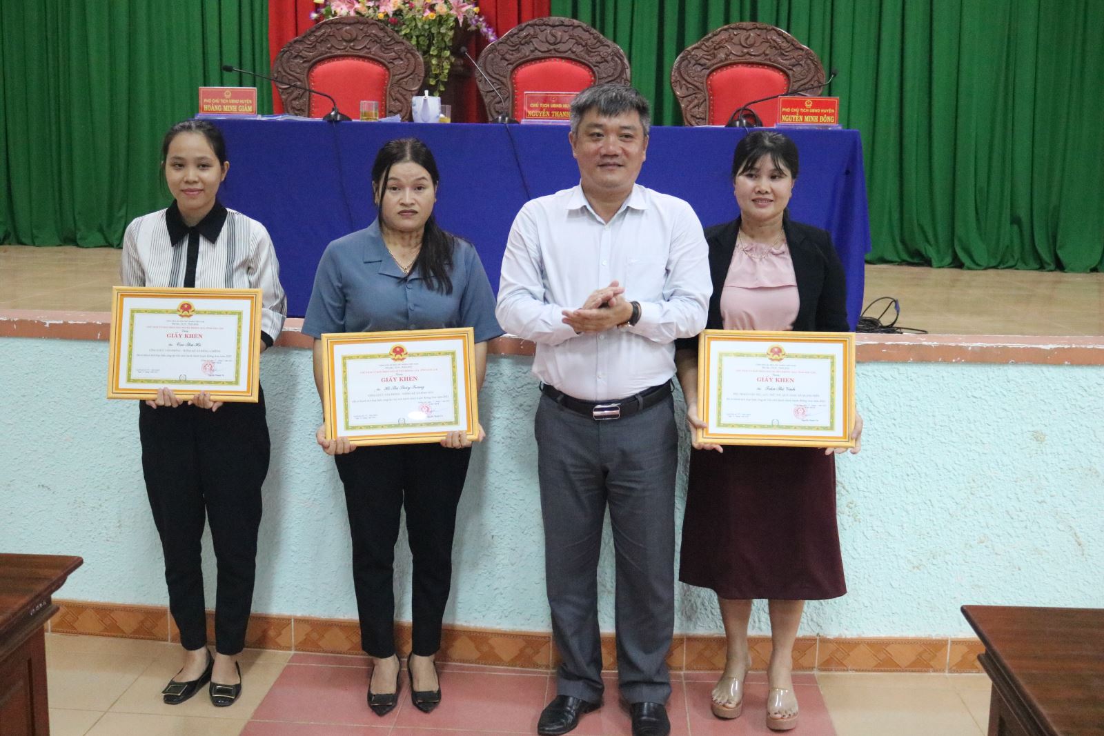 Lãnh đạo Huyện ủy và UBND huyện tặng giấy khen cho các cá nhân có thành tích trong công tác CCHC năm 2021