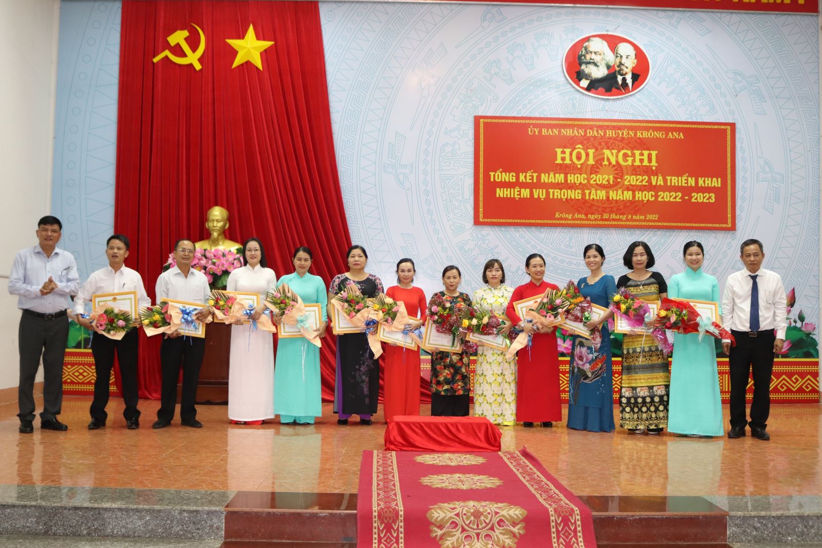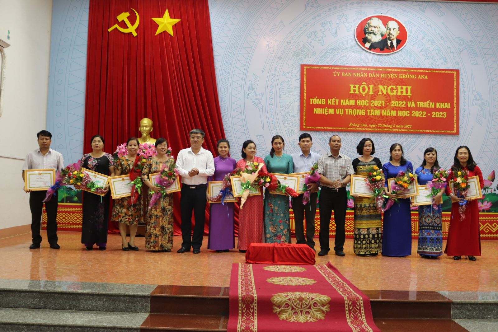 Nhân dịp này, UBND huyện Krông Ana tặng giấy khen cho 12 tập thể và 235 cá nhân thuộc ngành Giáo dục và Đào tạo huyện có thành tích tiêu biểu trong việc thực hiện các phong trào thi đua năm học 2021-2022; Đồng thời, trao danh hiệu thi đua cho 35 tập thể Lao động tiên tiến, 1.129 cá nhân, 115 chiến sỹ thi đua cá nhân.