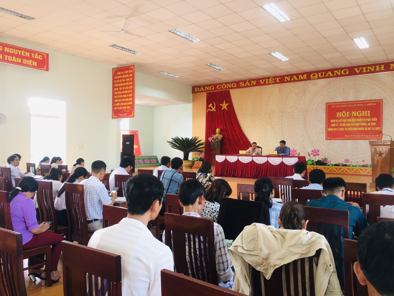 Chiều ngày 20/3/2023, UBND xã Băng A Drênh tổ chức hội nghị sơ kết đánh giá tình hình phát triển kinh tế, xã hội, đảm bảo quốc phòng, an ninh, công tác cải cách hành chính quý I và triển khai phương hướng nhiệm vụ quý II năm 2023. Về dự hội nghị có đại diện thường trực Đảng ủy; HĐND; UBMTTQVN và các đoàn thể xã, cán bộ, công chức xã, trưởng các thôn, buôn, cộng tác viên khuyến nông và đội trưởng 06 thôn, buôn trên địa bàn xã.