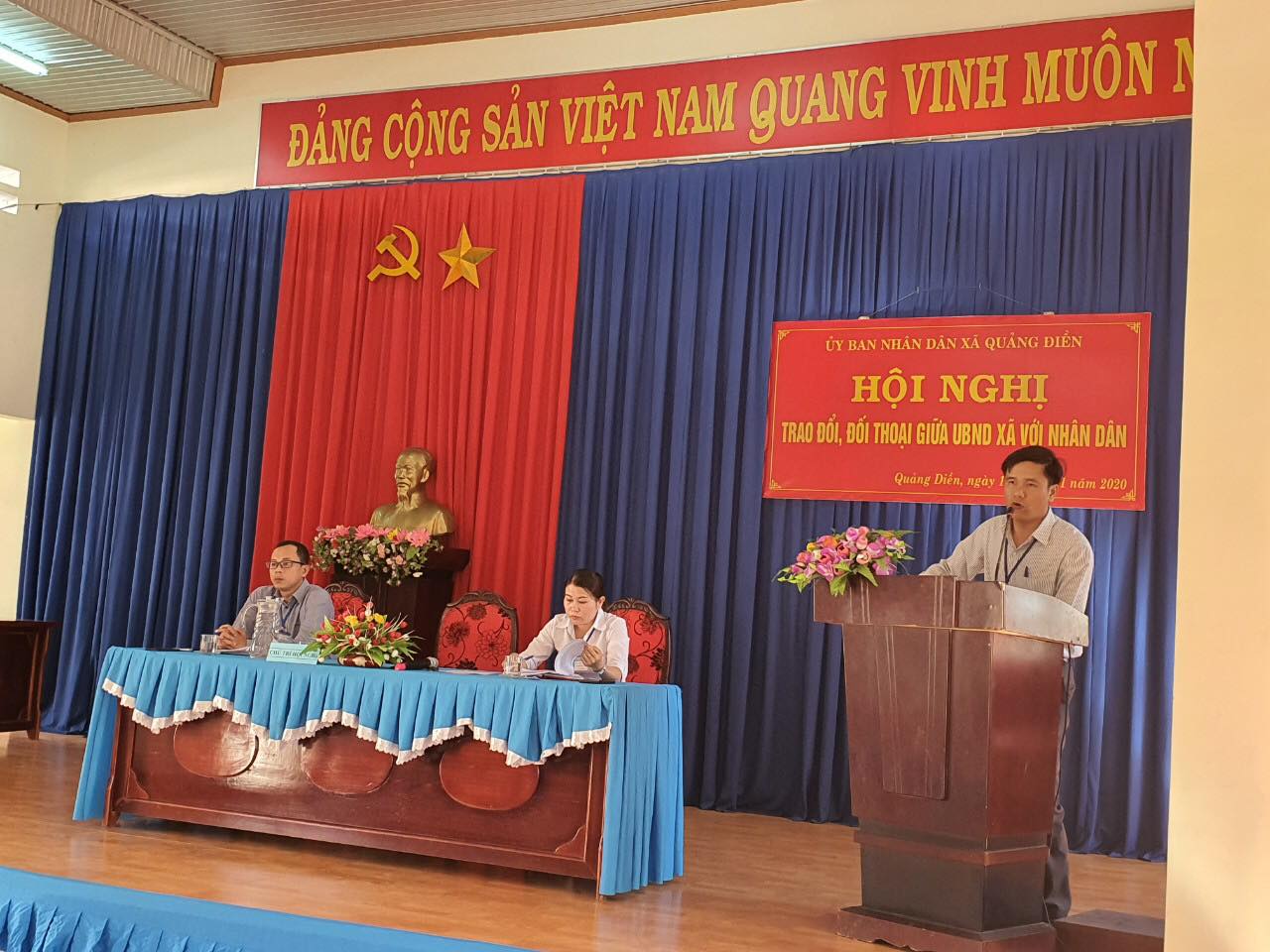 Ngày 19/11/2020, UBND xã Quảng Điền tổ chức hội nghị trao đổi, đối thoại giữa UBND xã với Nhân dân năm 2020. Hội nghị do ông Lê Văn Kiên, Chủ tịch UBND xã chủ trì, tham dự Hội nghị có đại diện Thường trực Đảng ủy, HĐND, UBND, UBMTTQVN, các đoàn thể, cán bộ, công chức xã và hơn 80 công dân đại diện cho các hộ gia đình đến từ 05 thôn trên địa bàn xã.