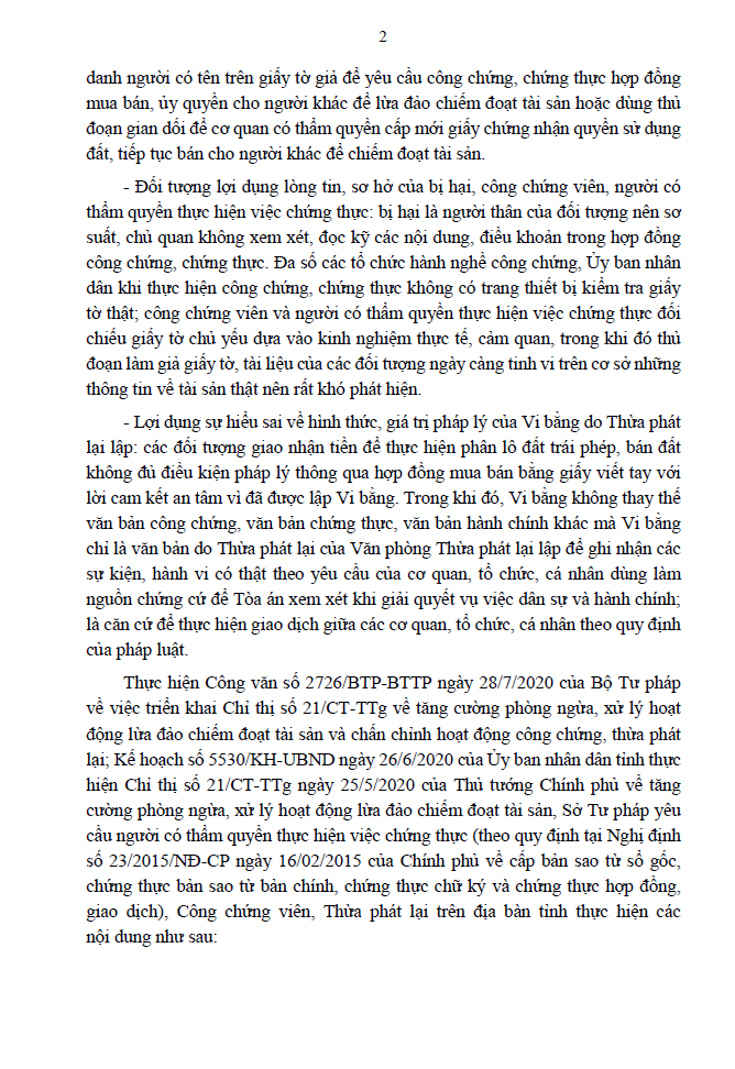Về việc tăng cường phòng ngừa lừa đảo, chiếm đoạt tài sản và chấn chỉnh hoạt động công chứng, chứng thực, thừa phát lại