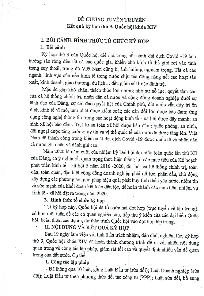 Về việc tuyên truyền kết quả kỳ họp thứ 9, Quốc hội khóa XIV