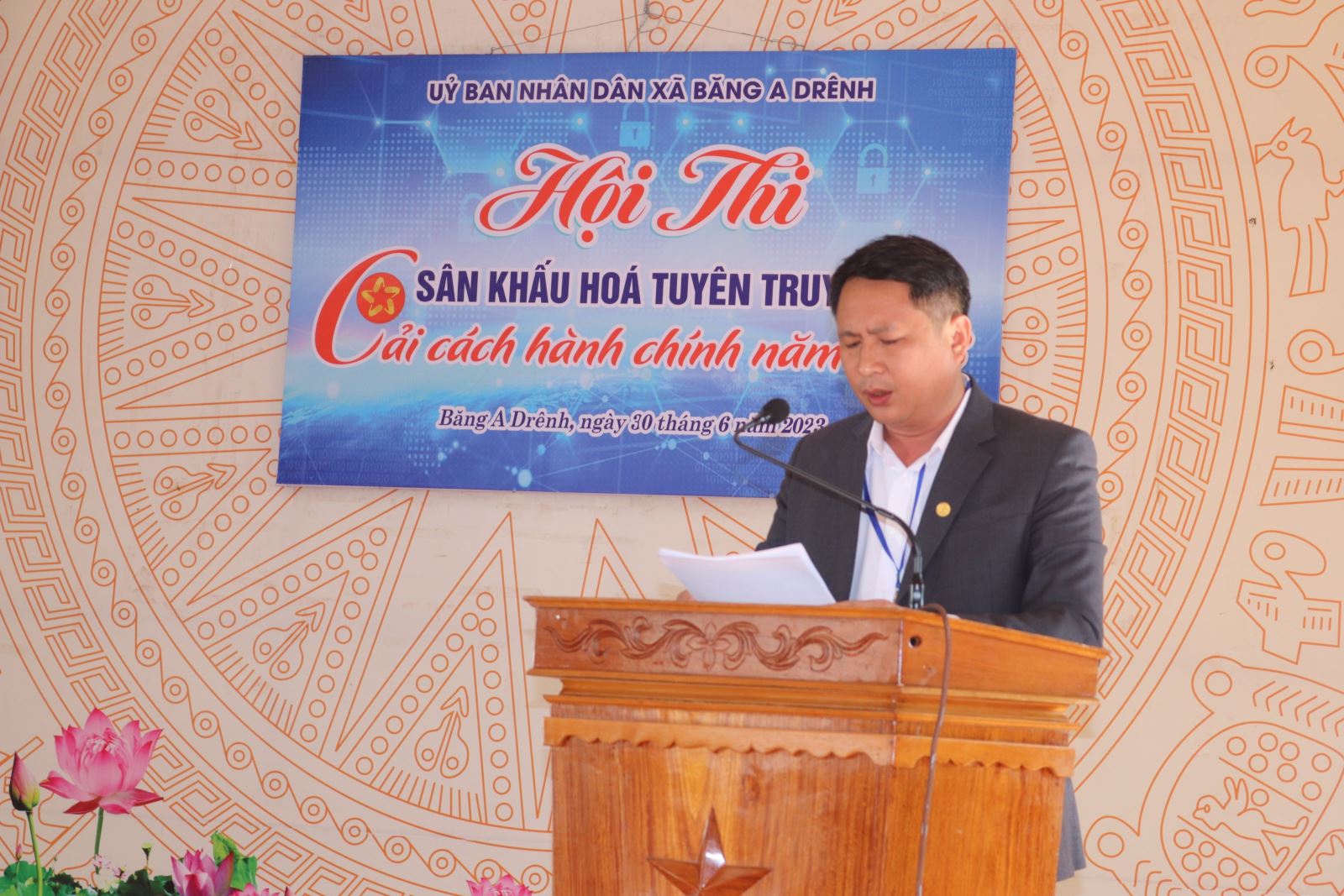 Sáng ngày 30/6/2023, UBND xã Băng A Drênh tổ chức hội thi sân khấu hóa tuyên truyền Cải cách hành chính năm 2023. Tham dự và chỉ đạo hội thi có ông Đào Quốc Khánh, Chủ tịch UBND xã, Trưởng Ban chỉ đạo CCHC, các ông, bà đại diện cho Đảng ủy; HĐND; UBND; UBMTTQ Việt Nam, các đoàn thể xã, 06 đội thi và gần 100 khán giả đến từ các thôn, buôn trên địa bàn xã.